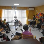 めっきり涼しくなり、文化の秋・芸術の秋になりましたね。今回はボランティアの方々が奏でる懐かしいメロディーの数々(赤とんぼ・青い山脈・上を向いて歩こう・見上げてごらん夜の星を・高校三年生等)を一緒に謡いました。それぞれ青春に想いを馳せていらっしゃるご様子でした。